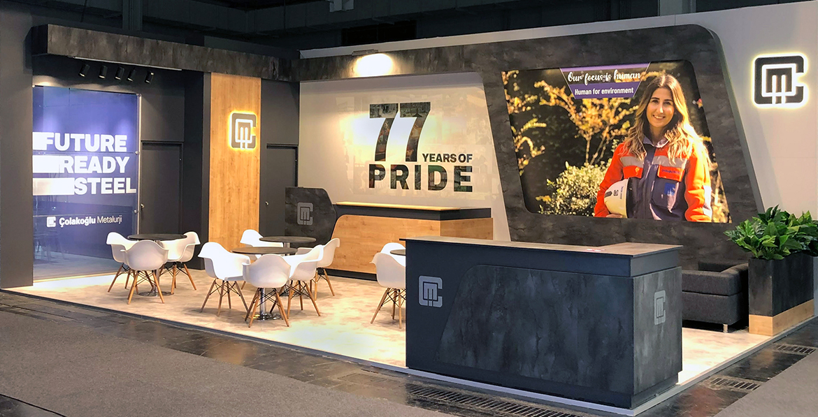 PROJE DETAYI PROJE: Çolakoğlu TASARIM: Edi Tasarım KONSEPT: Çelik Vizyonu FUAR: Euro Blech 2022 TARİH: 25/10/2022 – 28/10/2022 Paylaş ÇOLAKOĞLU EuroBLECH 2022 için hayata geçirdiğimiz Çolakoğlu Metalurji standı, çeliğin gücünü ve endüstriyel estetiği modern bir tasarım dilinde buluşturuyor. Markanın sektördeki köklü ve güvenilir imajını, keskin geometrik formlar ve kontrast renk…