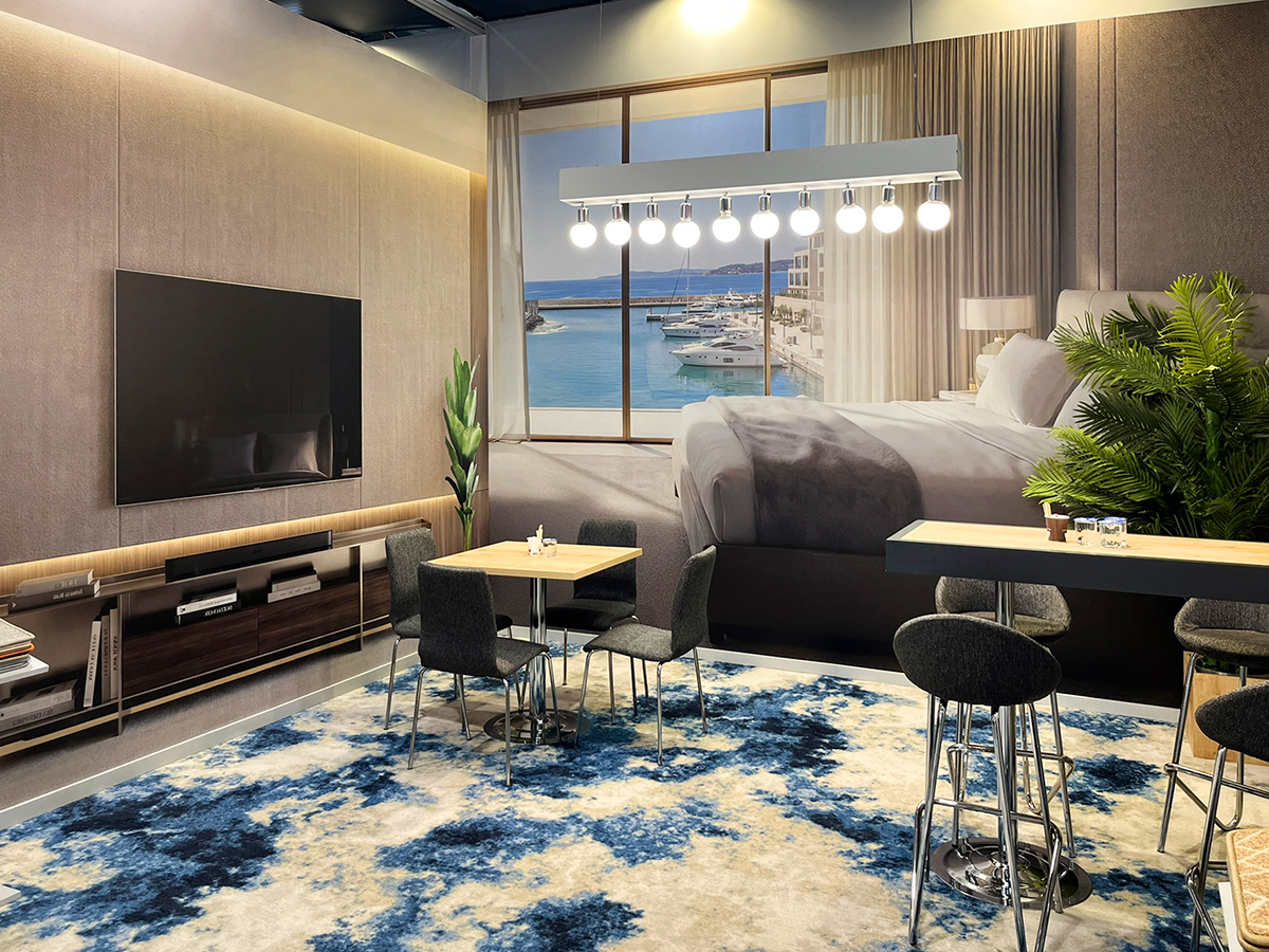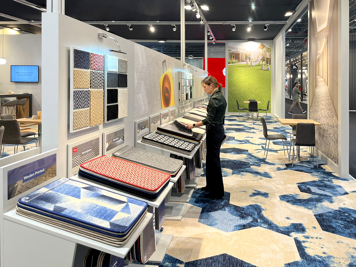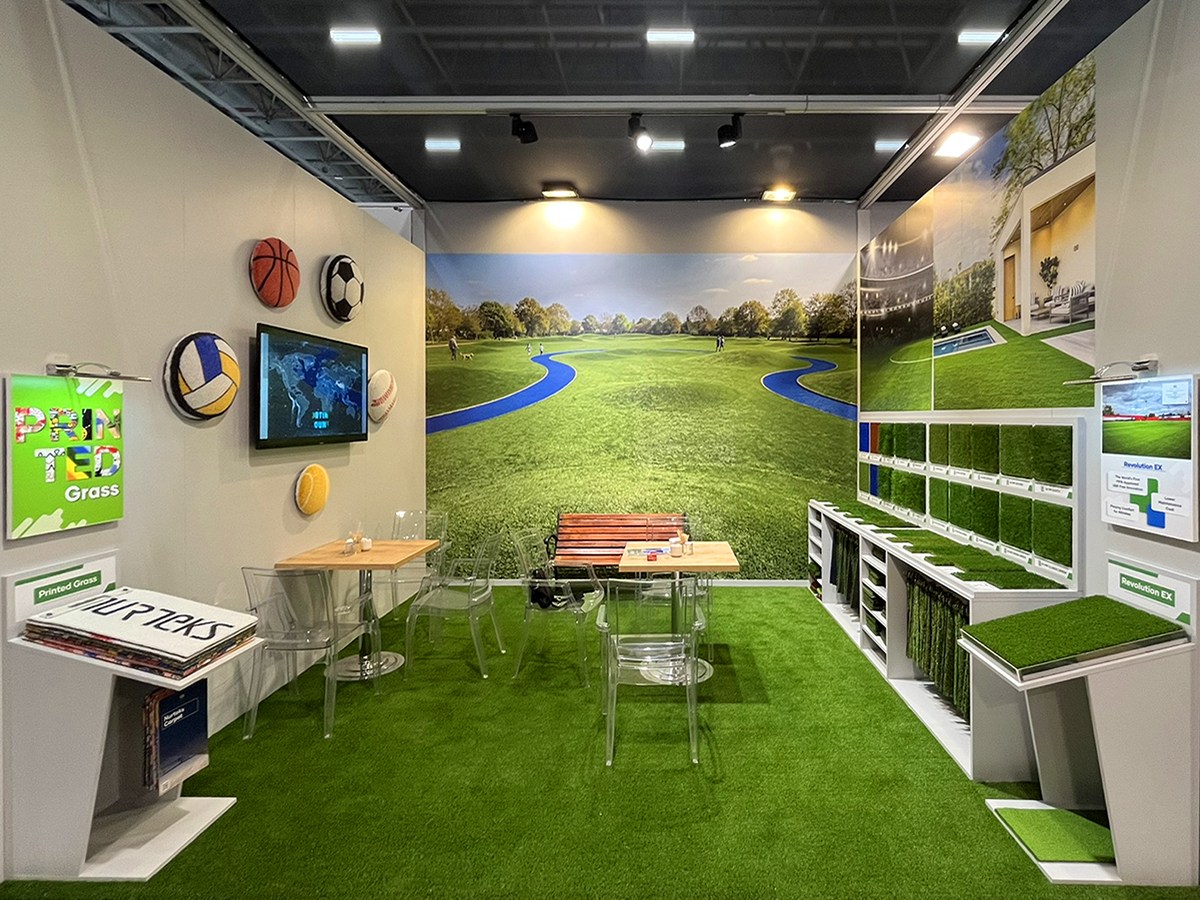 ICFE 2026 için tasarladığımız Nurteks standı, markanın suni çim ve halı endüstrisindeki uzmanlığını doğadan ilham alan modern bir mekan kurgusuyla sergiliyor. Yeşil dokuların ferahlatıcı etkisini, ahşabın sıcaklığı, açık ve antrasit detaylarla birleştiren tasarımımızda, ürünlerin dokusunu ön plana çıkaran dikey sergileme üniteleri kullandık. Ziyaretçilere konforlu bir görüşme alanı sunan geniş açık planlı yapısı ve kurumsal kimliği yansıtan estetik aydınlatma detaylarıyla, Nurteks’in sürdürülebilir ve yenilikçi yüzünü uluslararası bir platformda modern ve yalın çizgilerle temsil ettik.